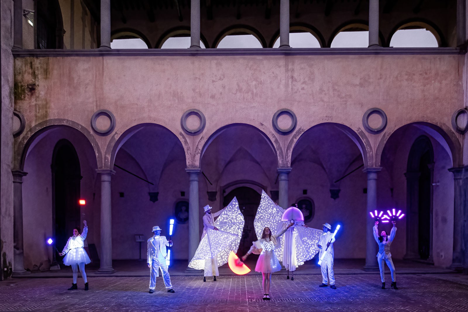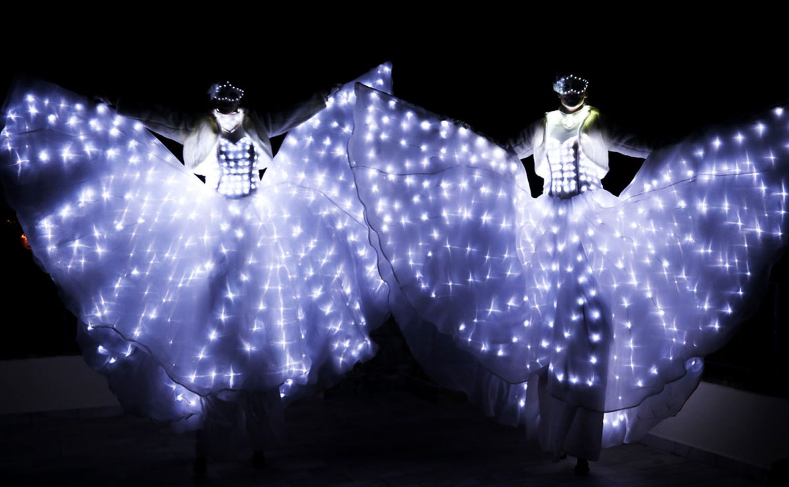 E’ caratterizzato, nella nostra chiave contemporanea, da incursioni di personaggi con costumi luminosi su trampoli, farfalle luminose, giocolieri con strumenti luminosi personalizzabili ed effetti speciali.