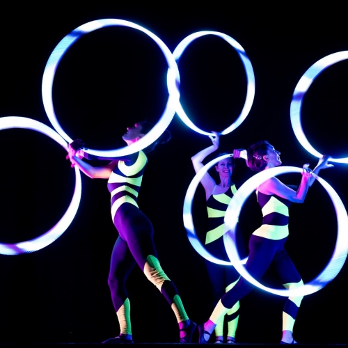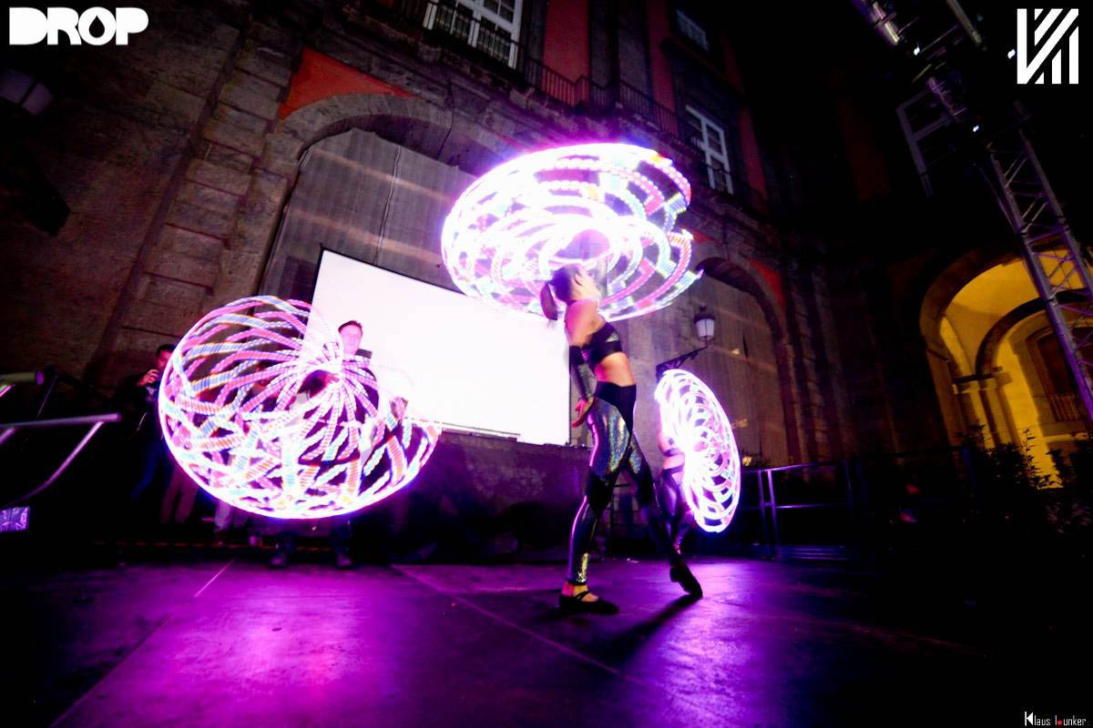 Ci saranno numeri tecnici di indubbio valore artistico e un forte impatto visivo sarà garantito dall’utilizzo di imponenti costumi luminosi. Le nostre esibizioni possono essere inserite all'interno di una moltitudine di eventi ed utilizzate come accoglienza, come intermezzo o all'interno di una regia più ampia. In base alla programmazione dell'evento si può scegliere fra una grande varietà di discipline di giocoleria LED e tipologie di costumi. L’unica parola d’ordine è “Stupire”.