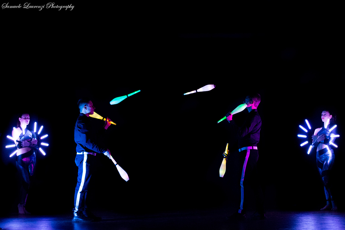 Spettacolo con luci led e giocoleria luminosa per eventi aziendali