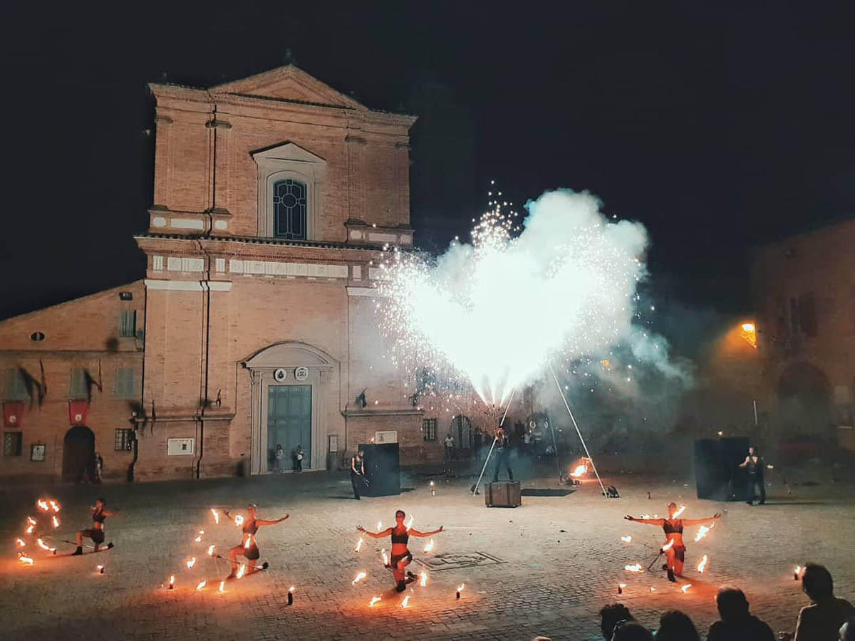Il Grande Spettacolo di Fuoco è pensato per grandi eventi e piazze come attrazione principale della serata con giocolieri di fuoco
